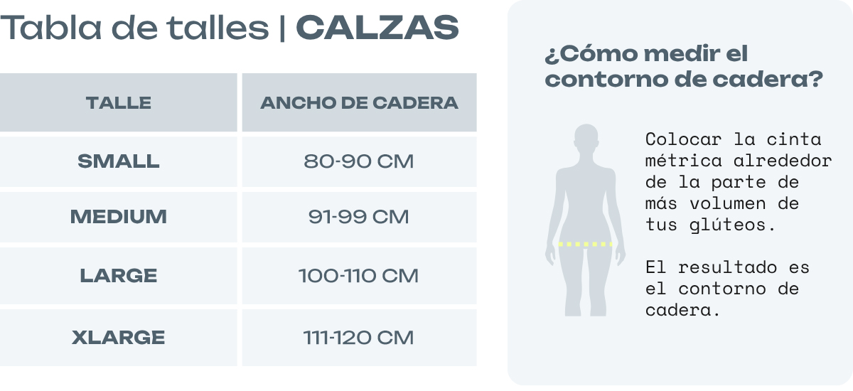 *Las calzas son más bien chicas. Si estás entre medio de dos talles te recomendamos optar por el más grande.